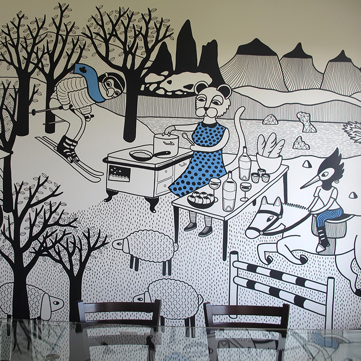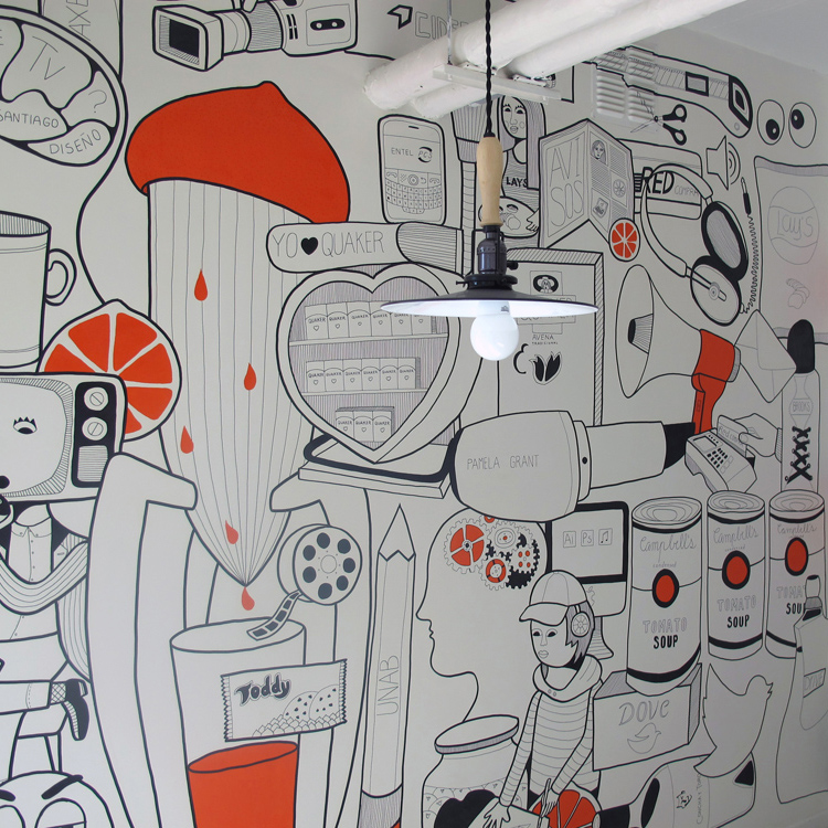 Ilustraciones realizadas directamente sobre el muro. Estos murales cuentan historias muy personales de familias y empresas que quisieron llevar la ilustración más allá, ya sea en su comedor, en su restorán, en el lobby o en la sala de reuniones. Definitivamente, lograron darle un toque único a sus espacios.
