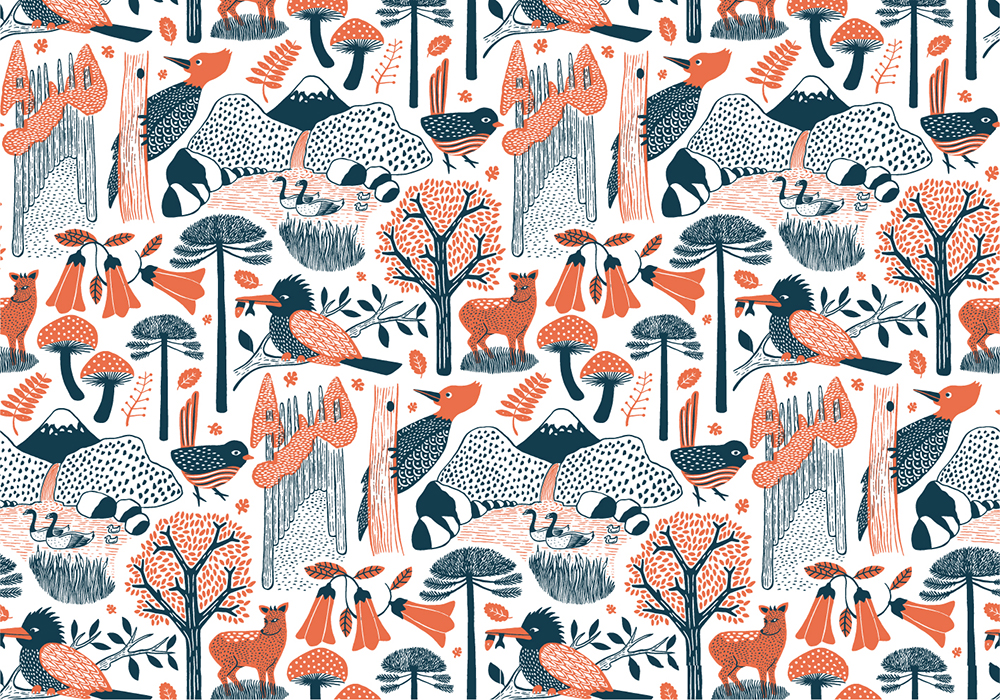 Desarrollo de diferentes colecciones textiles para la marca de diseño chilena Hued hued (www.huedhued.com), por medio de patterns ilustrados estampados en serigrafía sobre algodón. La marca rescata el patrimonio natural de Chile en materia de flora y fauna, y la integra a la vida cotidiana de las personas por medio del diseño y la ilustración.